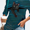 At an upscale art gallery opening, surrounded by captivating artwork and a diverse crowd of art enthusiasts, your Black Cat Print Long Sleeve Tee makes a statement. Worn under a tailored black blazer, the tee's bold white stripes and charming cat print provide a modern twist to a traditional formal look. As you engage in discussions about the featured artists, your outfit reflects your personality—artistic, fun, and confident. The combination of comfort and style allows you to fully enjoy the evening without feeling restricted.