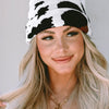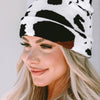 In these formal settings, the Cozy Knit Cow Print Beanie not only serves its practical purpose of keeping you warm but also elevates your style, making a bold fashion statement.