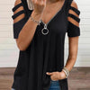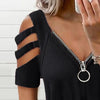 Cold Shoulder Cutout Sleeve Zip Front Top