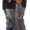 Color Block Crew Neck Long Sleeve Loose Pullover Hoodie