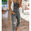 Women's Utility Denim Jumpsuit with Wide Leg Pants in Light Blue and Camouflage Gray Solid Color
