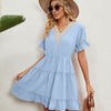 Jacquard fur ball V-neck loose solid color elastic waist dress