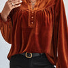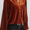 Gold Velvet Pile Neck Pleated Long Sleeve T-Shirt
