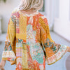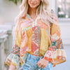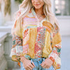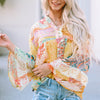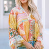 Vintage Map Print V-Neck Long Sleeve Blouse with Casual Flair