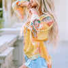 Map Printed V-Neck Casual Long Sleeve Blouses