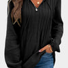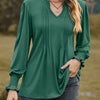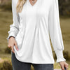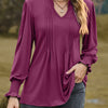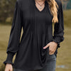 V Neck Puff Short Sleeve Pleated Fashion Casual Tunic T-Shirt