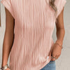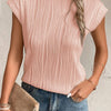 This Pink Wavy Texture Cap Sleeve Top is the perfect addition to your wardrobe. With its elegant wavy texture and solid pink color, this top offers a simple yet stylish look that never goes out of fashion. Whether paired with jeans or denim shorts, this top is versatile and suitable for any occasion. Made from high-quality fabric, it provides both comfort and style, making it a must-have for your daily outfits.