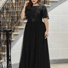 Plus Size Women's Embroidery Evening Dresses with Short Sleeve