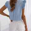 • Elegant Design: Featuring delicately ruffled sleeves, intricate lace panels, and a mock collar, this blouse exudes elegance.
