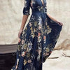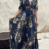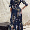 Elegant Printed V-neck Button Dress with Three-quarter Sleeves