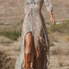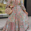 Whether you're stepping out for a casual day or a special event, this dress will have you looking effortlessly chic and feeling comfortable all day long. Don't miss the chance to elevate your style with our Retro Printing V Neck 3/4 Sleeve Split Hem Dress!