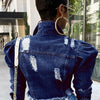 Embrace your unique style and exude confidence with this Ripped Raw Hem Puff Sleeve Pocket Cropped Denim Jacket, an essential addition to your fall/winter wardrobe.