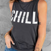 How to style a loose fit slogan printed sleeveless top for a fashionable look?