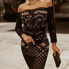 Off-Shoulder Lace Dress With Long Sleeves And Hip-Hugging Style