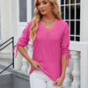 What is a V-neck three-quarter sleeve buttoned drawstring loose T-shirt top?