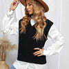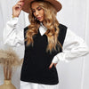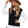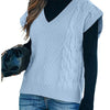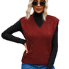 Women'S Slim Fit V-Neck Cable Knit Sleeveless Vest Sweater With Solid Color Casual Vest Jacket