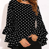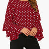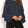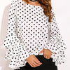 Dot Print Flared Sleeve Chiffon Blouse