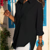 Don't miss out on adding this versatile and chic blouse to your wardrobe. Elevate your everyday look with the Lapel Long Sleeve Irregular Split Blouse!