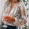 Upgrade your wardrobe with our stunning Sequined V-Neck Long Sleeve Blouse! Perfect for fashion-forward women looking to add a touch of glamour to their outfit, this blouse combines style and comfort effortlessly.