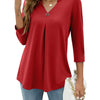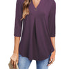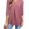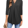 Casual V-Neck Loose Fit Blouse with Mid-Length Sleeves