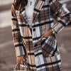 Stylish Loose Lapel Woolen Coat with Checkered Pockets