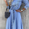 What is a Pocket Lapel Belted Long Sleeve Denim Dress?