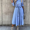 This denim dress is a versatile wardrobe staple because its classic cut and premium fabric allow for immense styling range. It transitions effortlessly from day to night and across seasons—wear it with sneakers for errands, boots and a hat for weekend outings, or heels and statement jewelry for dinner. The lapel and belt add formal elements rarely found in casual denim, maximizing its outfit potential.