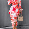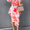 Tie-Dye Printed Long Sleeve Ruffle Fitted Dress