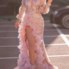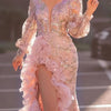 Sequin Mesh V-Neck Asymmetrical Long Sleeve Evening Gown