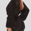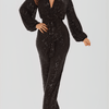 Get ready to dazzle in our Deep V-Neck Sequined Long Sleeve Wide-Leg Jumpsuit! This stunning piece is designed to make you stand out: