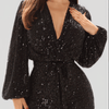 Feature: Deep V-Neck, Sequined, Long Sleeve, Wide-Leg