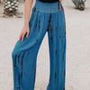 Envision yourself invited to an upscale dinner party at a renowned restaurant. You opt for the tie-dye print pants in a sophisticated tone, paired with elegant heels and delicate jewelry. The wide-leg style provides an air of sophistication, while the elastic high waist ensures comfort as you enjoy a multi-course meal. Throughout the evening, you receive compliments on your fashionable choice, and the unique tie-dye print becomes a topic of admiration among the other guests.