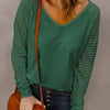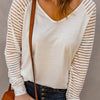 Stripe Long Sleeve Large Fashion Simple V-Neck T-Shirt